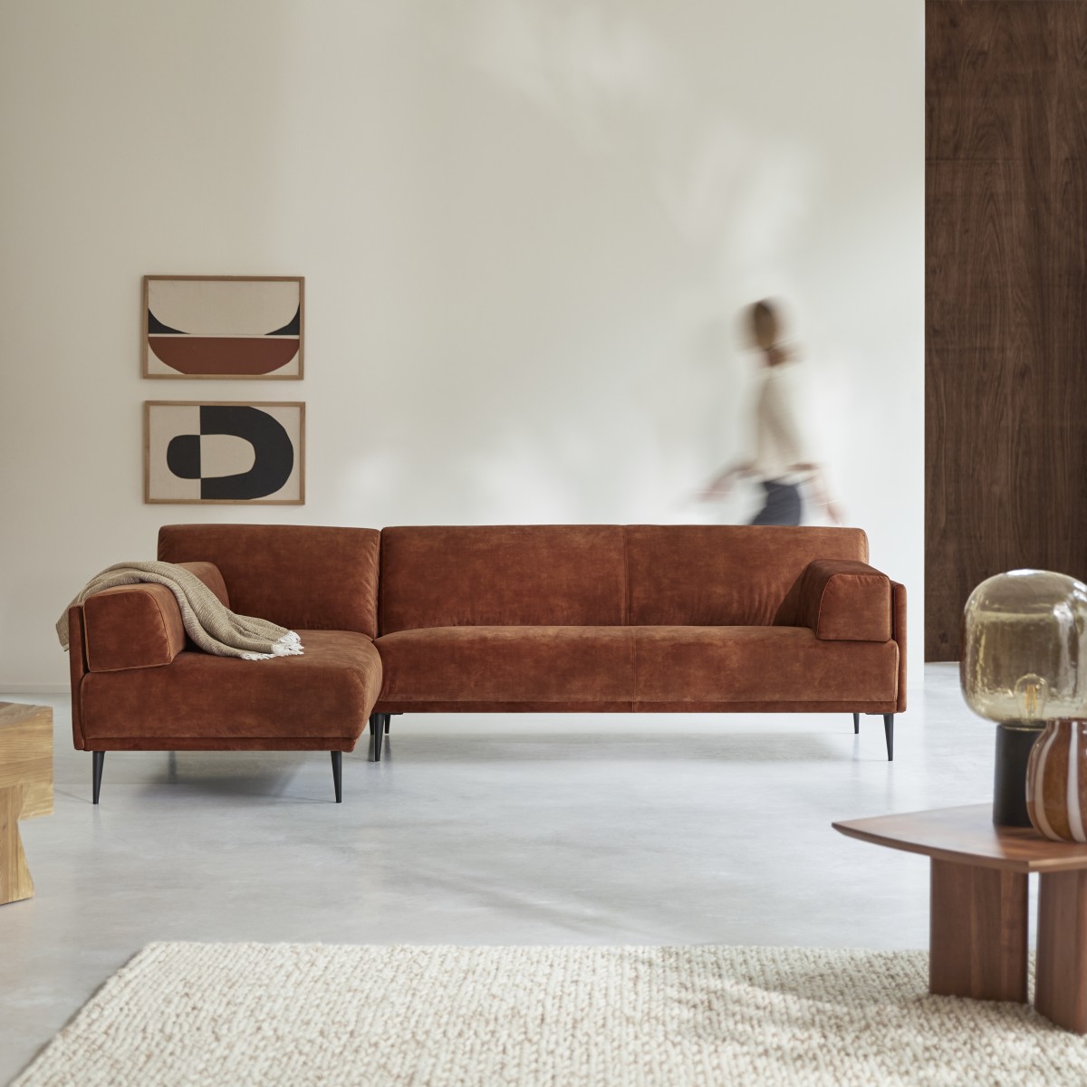 Canapé d'angle gauche en velours terracotta 270 x 180 cm, 4 places