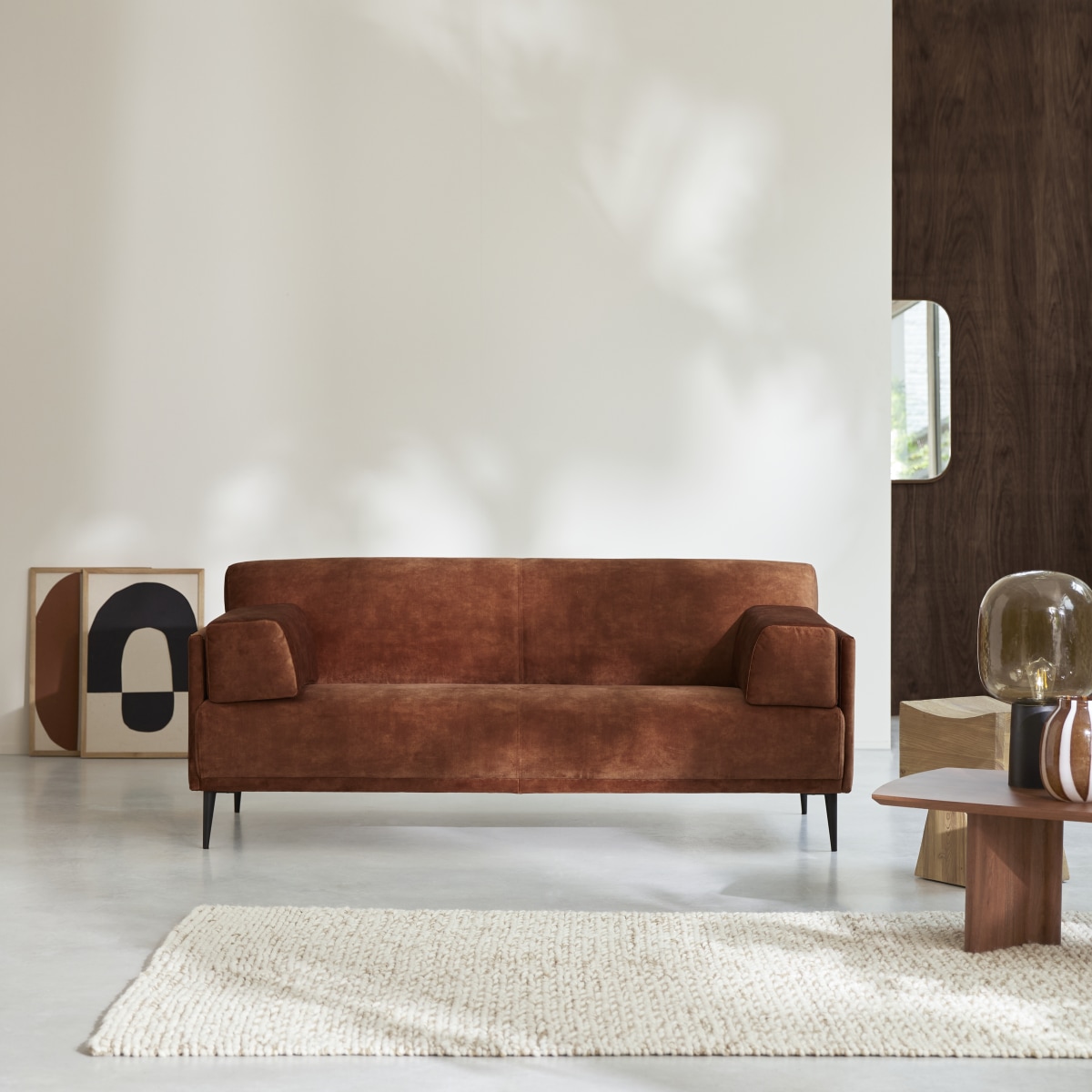 Canapé en velours terracotta, 3 places