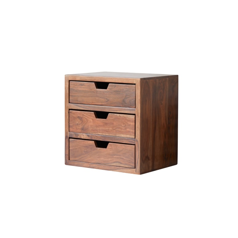 Le sheesham est un bois massif au dessin chamarré, appelé également palissandre des Indes ; ces éventuelles irrégularités sont gage de son authenticité.