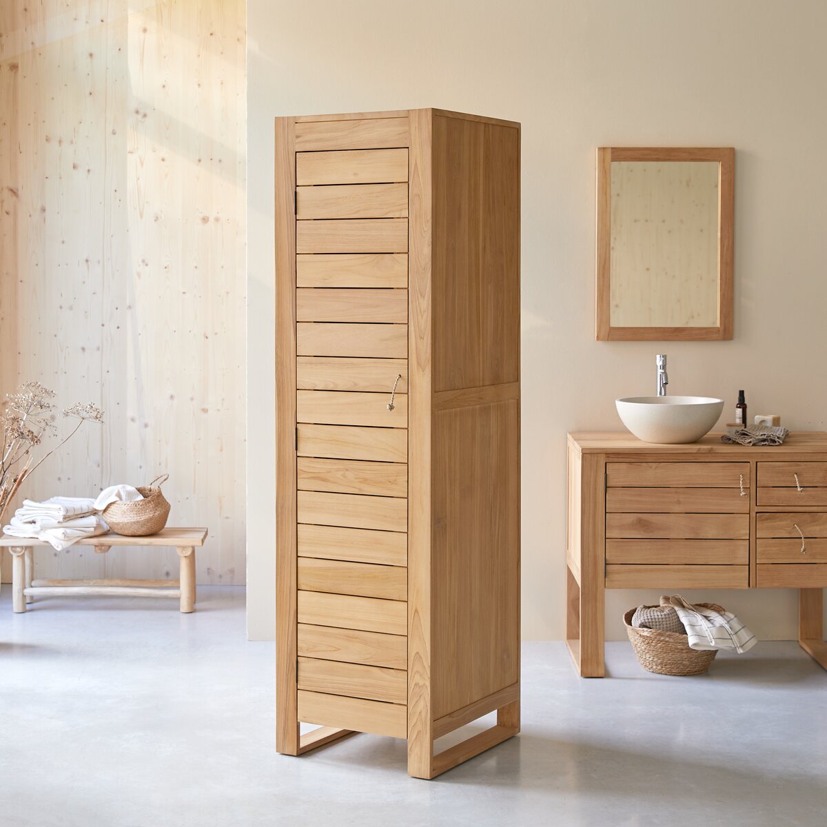 Colonne de salle de bain en teck massif