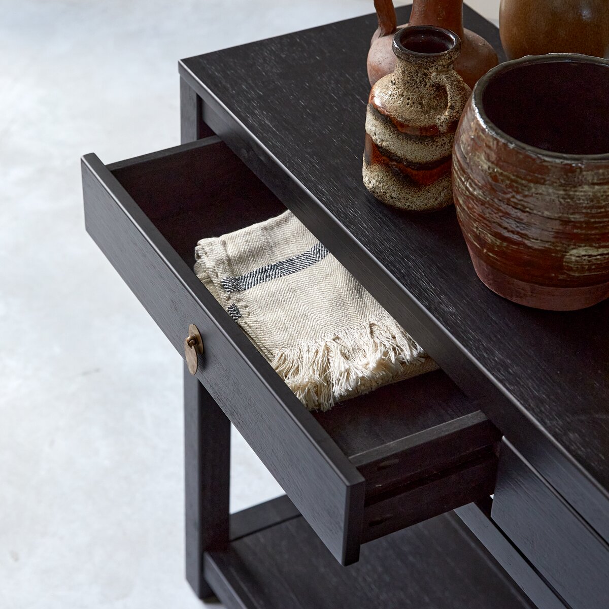 Console en pin massif 2 tiroirs