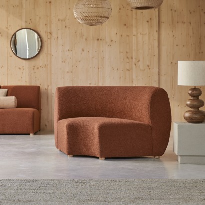Fauteuil d’angle modulable en acacia massif et tissu terracotta