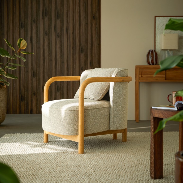 Fauteuil en chêne massif et tissu gris