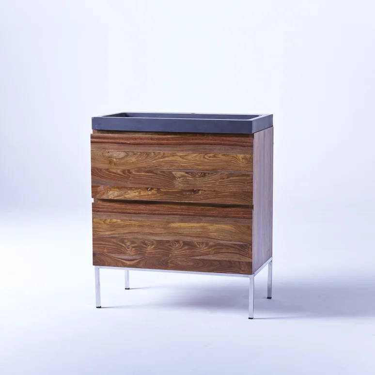 Meuble salle de bain en palissandre massif et pierre de lave 80 cm