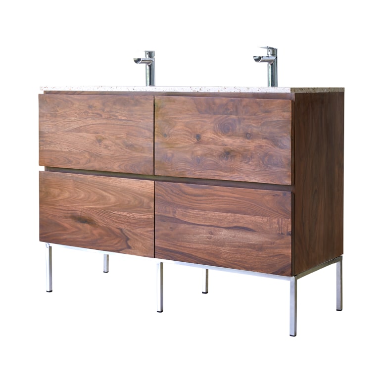 Meuble Salle de Bain en palissandre massif et terrazzo premium Pink 120
