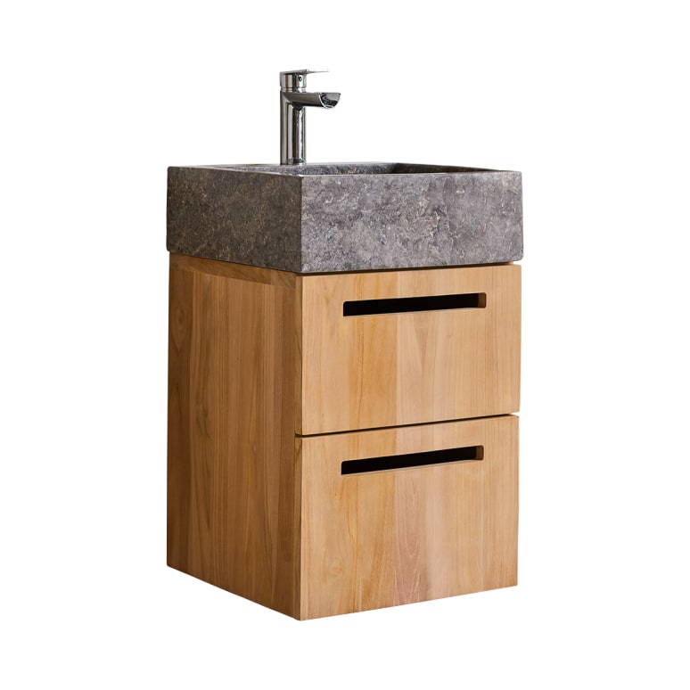 Meuble salle de bain en teck massif et marbre 40 cm