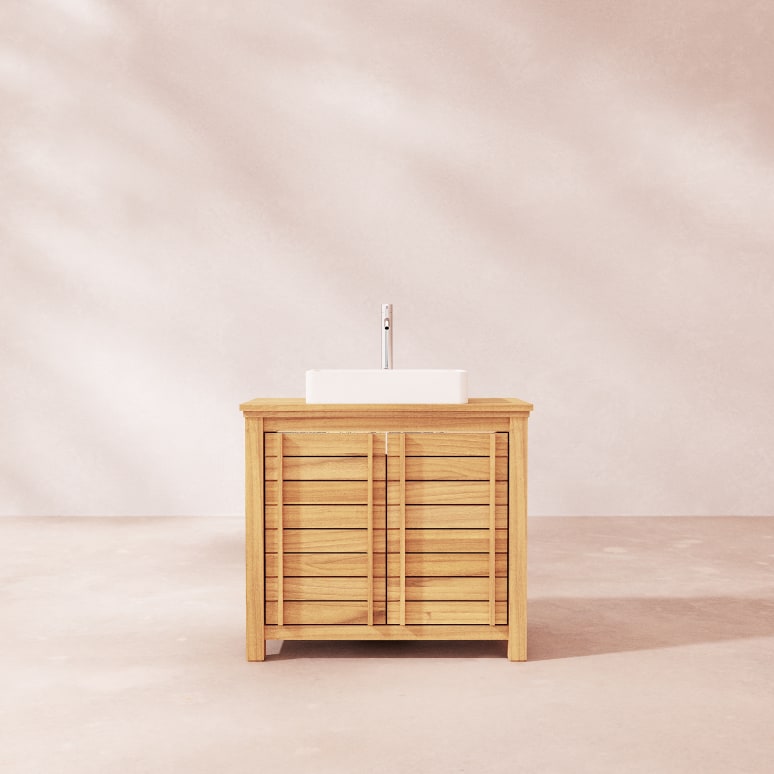 Meuble sous vasque en teck massif 90 cm