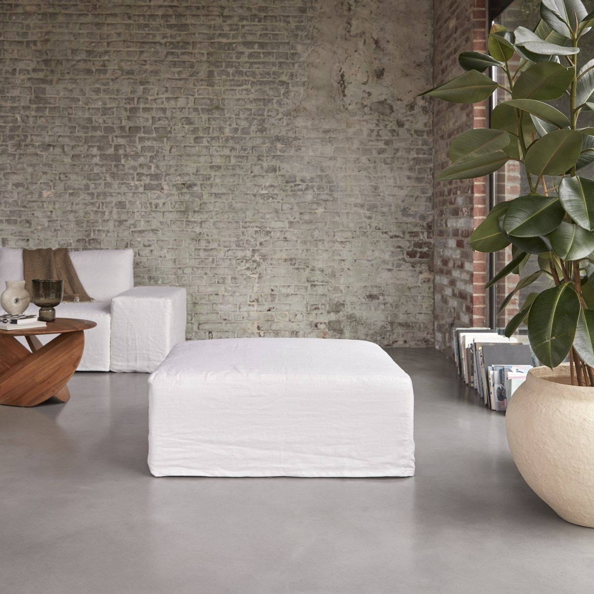 Repose-pieds en lin blanc