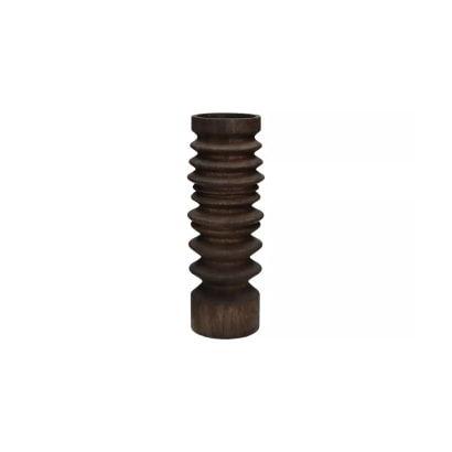 Fabriqué en bois de manguier, il séduit par sa teinte chaleureuse et ses lignes concentriques sculptées, qui lui donnent une allure à la fois moderne et artisanale. Avec ses dimensions (Ø11 cm x H32 cm), il met en valeur vos bougies sur une table de salle à manger, un buffet ou une console.