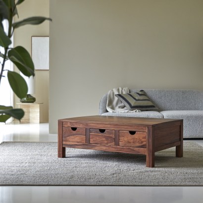Le sheesham est un bois massif au dessin chamarré, appelé également palissandre des Indes ; ces éventuelles irrégularités sont gage de son authenticité.