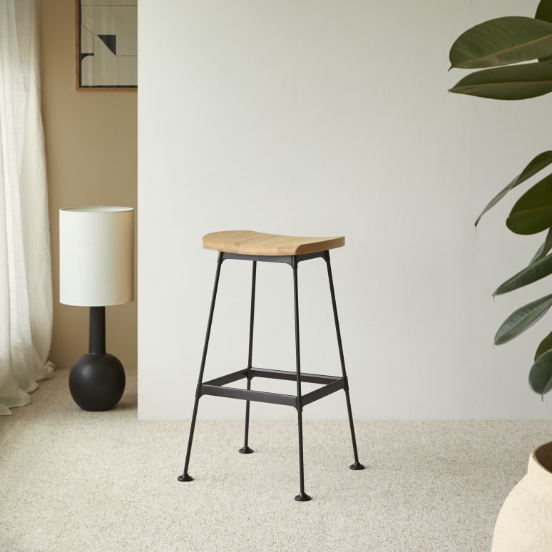 Tabouret haut en frêne et métal black